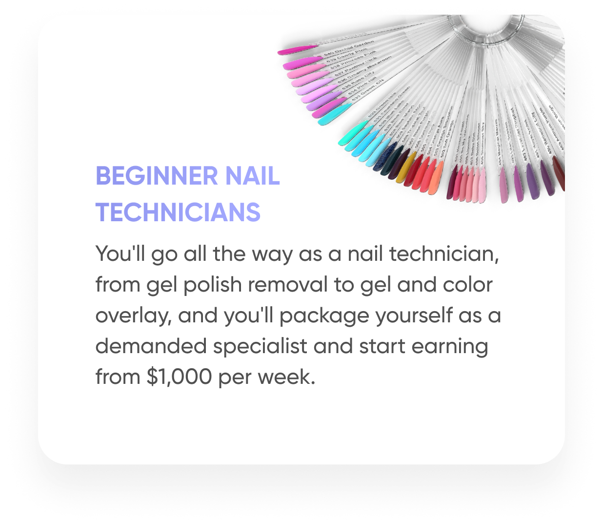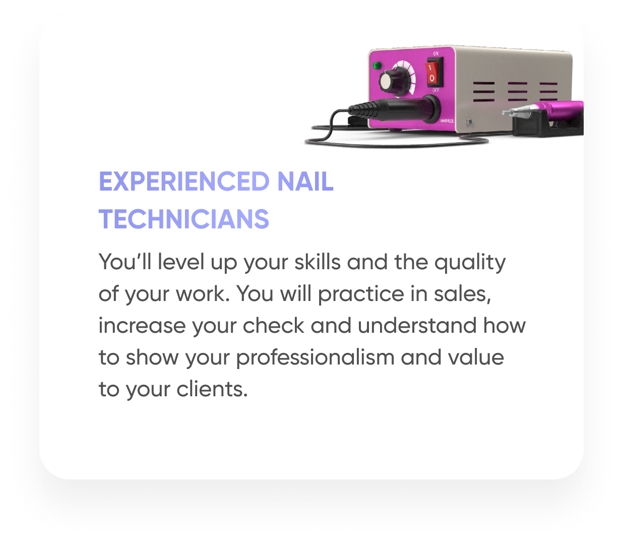 You will understand who your client is and how to present yourself as a successful nail tech, how to get fully booked